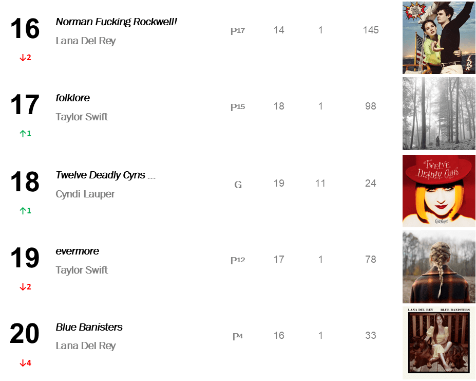 - Forty-seven weeks – Norman Fucking Rockwell!, Lana Del Rey