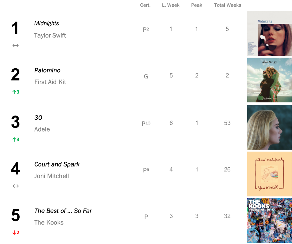 Swift continues her rule, as Arlo Parks vaults back into Top Ten!